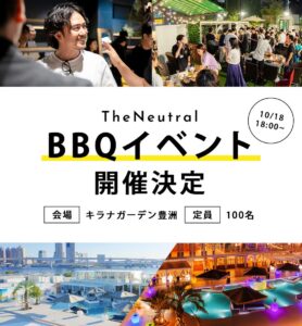 #年間イベントスケジュール EVENT SCHEDULE 今後のイベント[2025/12]【100名限定募集】即完必至の大人気イベント『TheNeutral Summit vol.5』を12/4(木)18時から開催!@スペース中目黒イベント2025.12.04過去に開催されたイベント会員制BAR「瓦町オリーブ」 10.31(金) The Neutral会員限定OPEN【豊洲BBQイベント!】10月18日(土)開催!【初の大阪イベント開催決定!】9月2日(火)『TheNeutralサミット Vol.4』開催!【瓦町オリーブ×BUDDICAツアー募集開始!】7月4日(金)夜から5日(土)昼にかけて開催!【イベント開催決定!】6月4日(水)『TheNeutralサミット Vol.3』開催!過去開催イベント一覧へ HOME 年間イベント